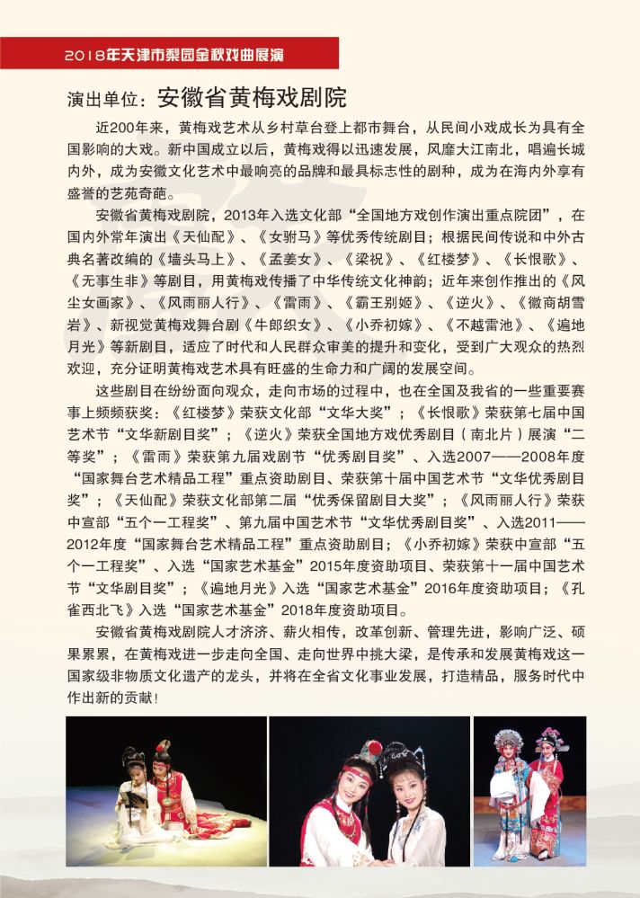 由天津市文化广播影视局、天津北方演艺集团主办,安徽省政府驻津办、天津安徽商会协办的“2018年天津市梨园金秋戏曲展演”已于9月7日在天津拉开帷幕。![]()